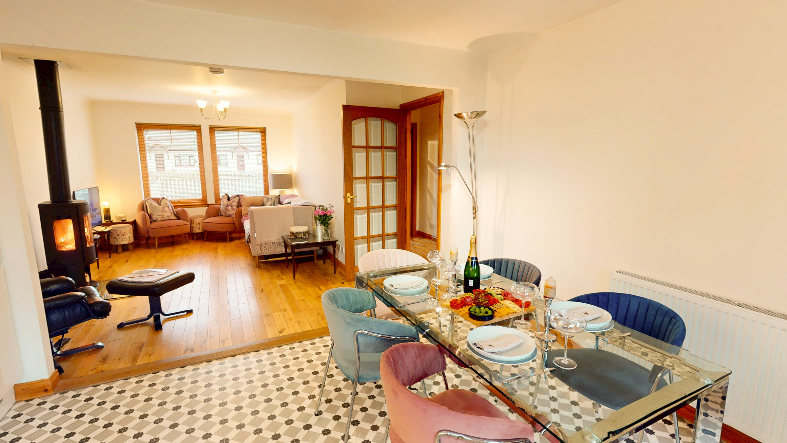 This holiday home sleeps up to 6 people and features 3 bedrooms. A king, a twin and the third bedroom can be twin or superking, making it super versatile for families or groups. A large kitchen, dining area and living room are smartly styled for a comfortable stay, making you feel right at home. It is also dog friendly so bring your pet along to your stay in Aviemore.