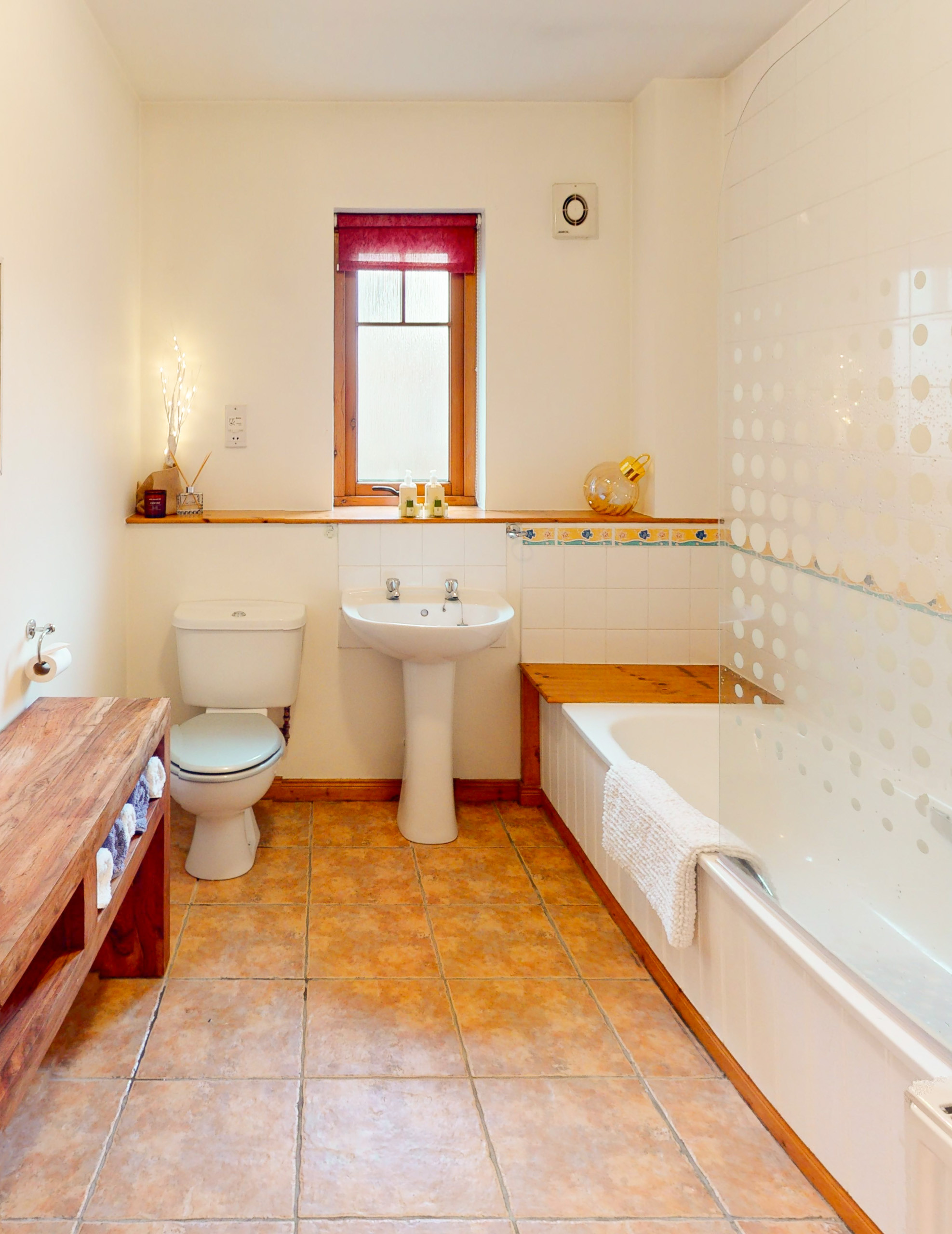 A utility room with washer/dryer is conveniently located at the front door, perfect for changing muddy gear after outdoor adventures in the Cairngorms National Park. Upstairs, you will find three bedrooms: a fresh and inviting en-suite master bedroom, a comfortable twin room, and a fun bunk bedroom complete with colourful bean bags, books, and retro arcade games. A sparkling family bathroom completes the upstairs.
