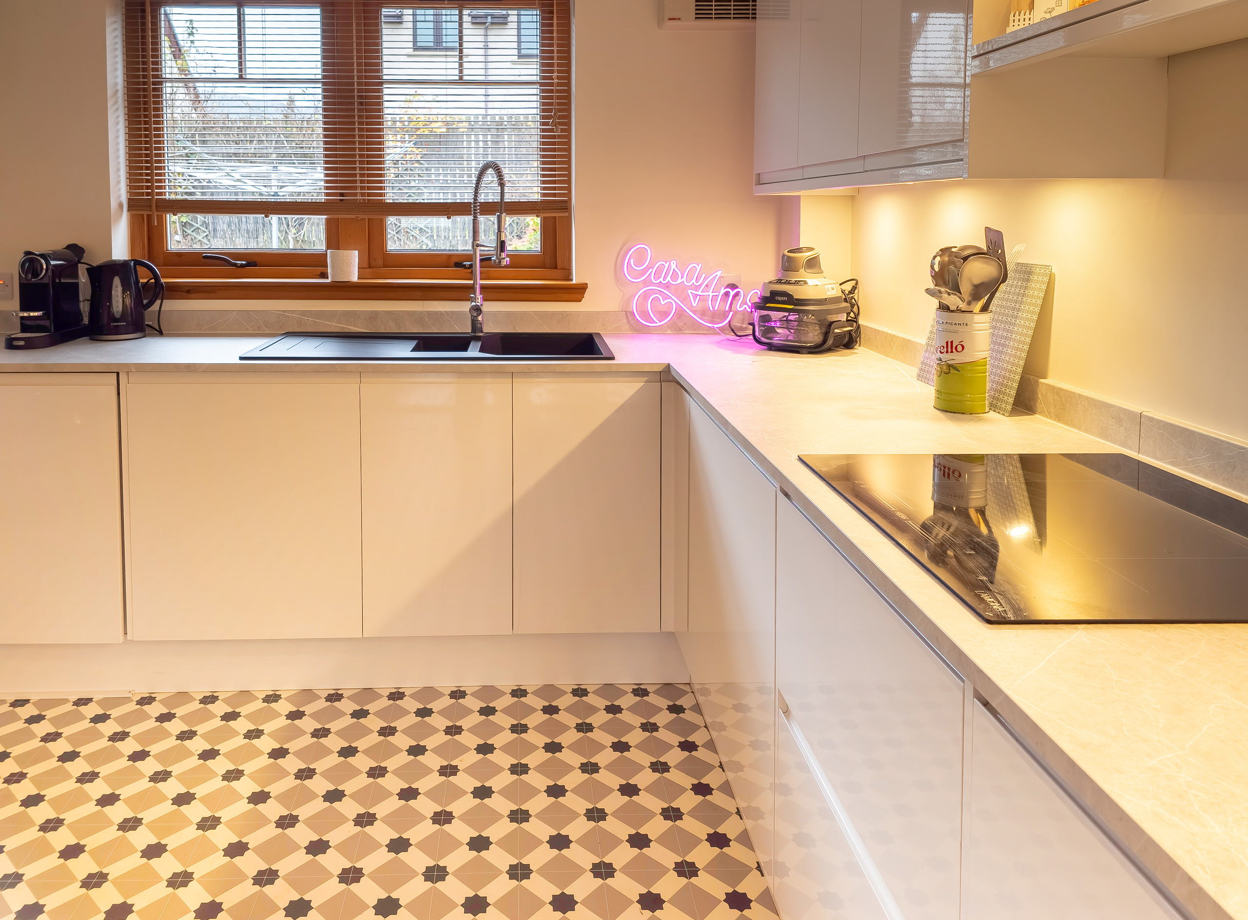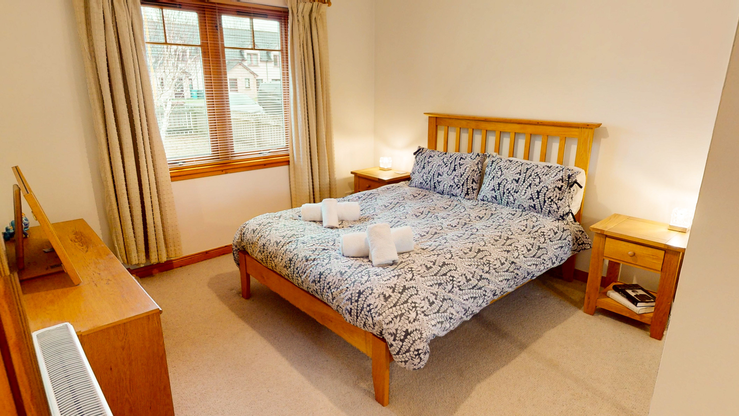 Freshly decorated throughout, the open plan living space is perfect for spending quality time together. The lounge area boasts some views of Craigellachie and includes some fun beanbags for movie nights. The dining areas are well-equipped for family dining and include a high chair and children’s cutlery, bowls, plates, and tumblers. The fully integrated kitchen has all the modern appliances you need and expect from a self catering holiday home.