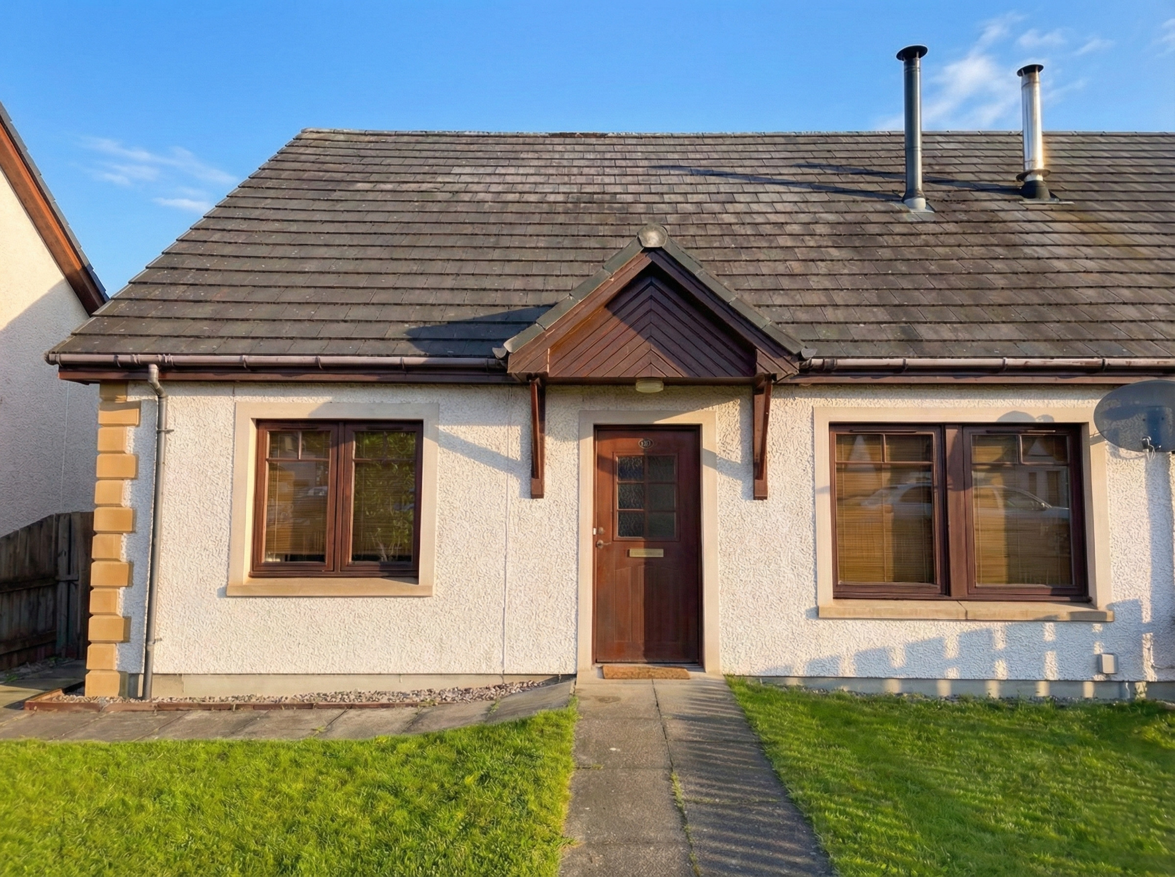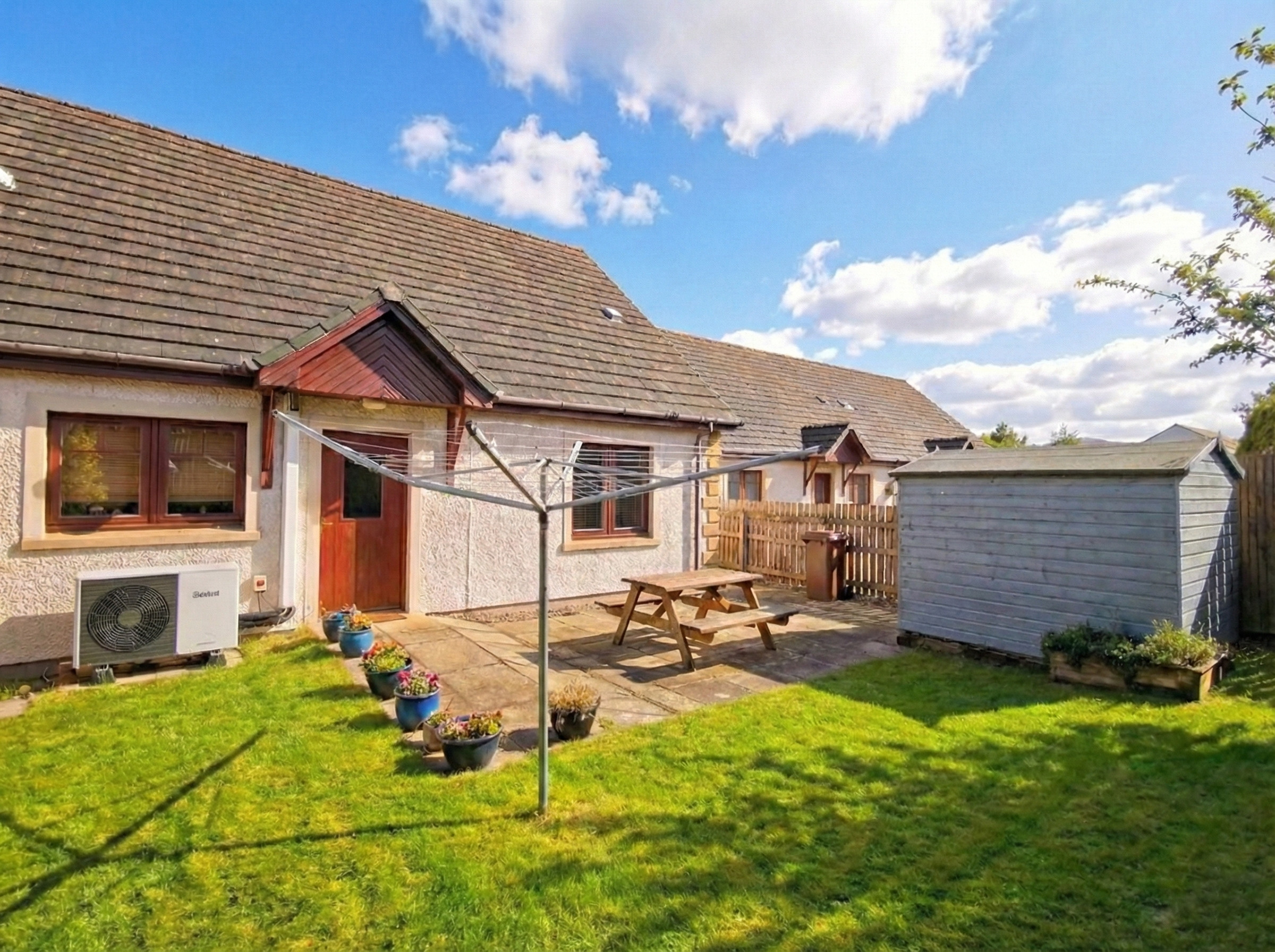 Burnside Pines faces the Cairngorm vista and offers superb views from the upstairs. The enclosed rear garden features a lovely rockery with alpine plants and is a cozy place to enjoy some time outdoors.